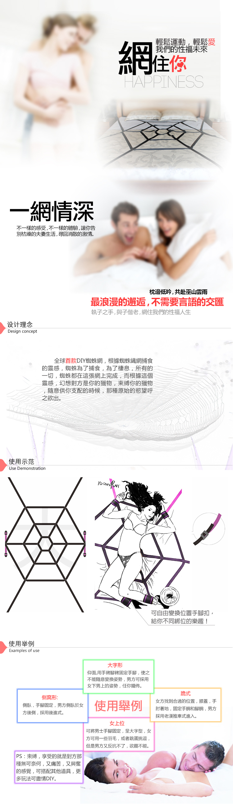 ★★(破盤出清商品)美國Roomfun.一網情深 手腳銬隨意固定百變束縛帶