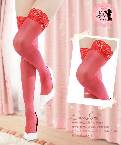 性感蕾絲邊長筒絲襪(紅)