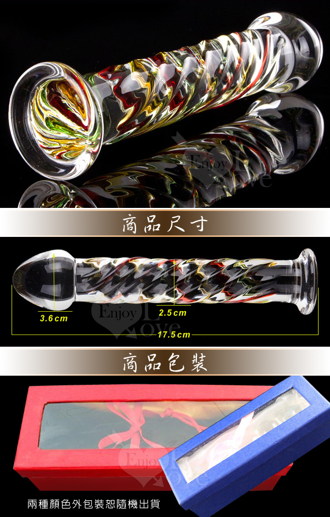 很多人想到玻璃,就認為是很冷很冰涼的東西,其實這款產品更適合女性使用,可以用熱水浸泡一下使用,因為用的是水晶玻璃原料,經專業的,有著多年豐富經驗的手工藝人,在1800度的高溫下,全手工精心製做而成。不用擔心高溫燙壞掉。想多熱就多熱,選擇您喜歡的熱度,夏天想多冰就可有多冰。冰火兩重天。而且流線型設計,圓潤剔透全然不會傷害身體,而且使用的時的視覺效果也是很好的哦! [產品成分]: 採用水晶玻璃硼矽酸原料,經專業的,有著多年豐富經驗的手工藝人,在1800度的高溫下,全手工精心製做而成。 [使用方法]: 1.可以直接清洗後使用,或者使用前直接用75%的醫用酒精擦洗消毒,並塗抹少量的潤滑劑,那種又滑又硬的理性,使你想一沖到底! 2.可直接使用,也可以隨意願加熱或冰凍,如果你想享受溫熱的感覺,可以將水晶玻璃在溫水中浸泡1-5分鐘;如果你渴望得到性感的顫抖,可以將水晶玻璃放置於冰水或冰箱中幾分鐘即可享用。 3.使用後用軟毛刷或手清洗後,再用清水沖洗乾淨,待半乾時用軟毛巾擦拭乾淨即可,不留水紋及手印。注意:千萬不要等水乾後再擦,因水乾後會留下水紋,必須半乾時就擦,若想使水晶製品更亮,則清洗後放置陽光下曬2-3小時,吸收太陽光後產品更加明亮 建議買兩根交替使用!一個開水燙 一個涼水冰!這樣一冰一火 何等的刺激!男人都喜歡冰火兩重天,咱姐妹也要試試! O(∩_∩)O 採用高檔水晶玻璃原料,經專業的,有著多年豐富經驗的手工藝人,在1800度的高溫下,全手工精心製做而成,不用電源、不會掉色、不會磨損、不會生鏽、冬天可加熱、夏天可冷冰、四季皆可用、一次購買,終身享受,你還等什麼…… ※ 給你的私處和後庭帶來冰火兩重天的刺激與快感,如果你真的是性的高手,那你一定會選它。 ※ 產品樣式、規格及顏色如圖所示。