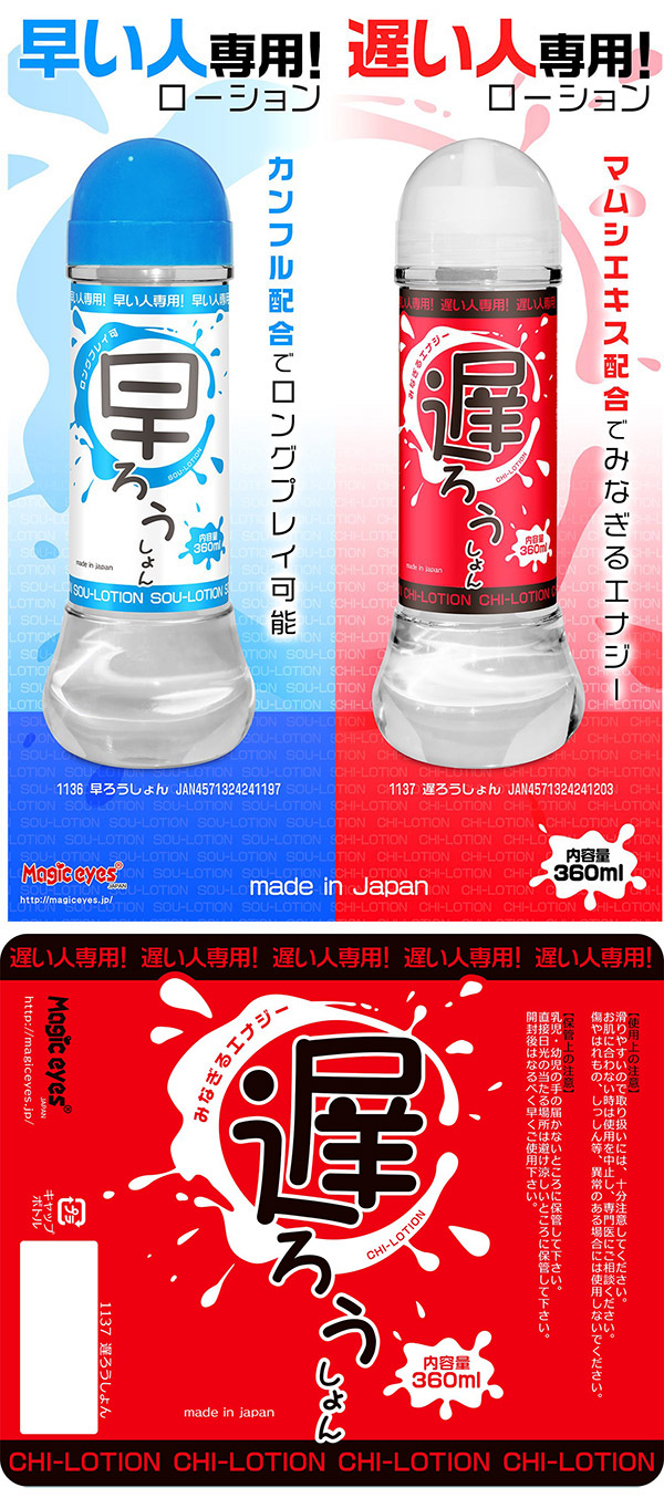 遅い人専用!遅ろうしょん!! 分かる人にはわかる使用感!? もっと熱いプレイを楽しみたい方にオススメ。 中粘度スタンダードタイプだからグッズの使用にも最適。 安心安全日本製ならではのハイクオリティーローションです!