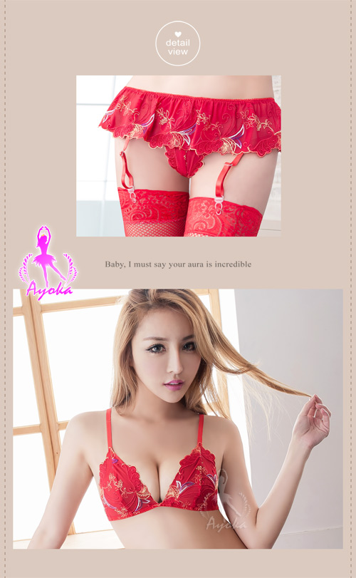 ►您現在的位置:首頁>吊襪帶 火辣紅刺繡網紗性感四件組