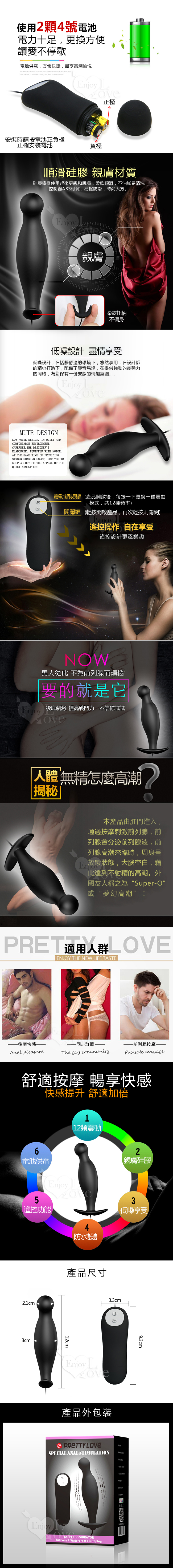 PRETTY LOVE 派蒂菈‧後庭鮮快感 - 12頻震感親膚前列腺按摩器