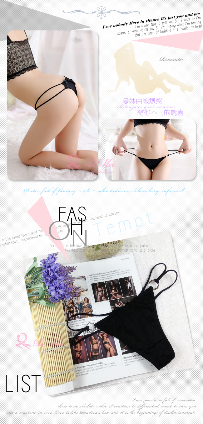 | 俏麗柔情!環扣絲滑鑽飾蝴蝶結丁字褲﹝黑﹞
