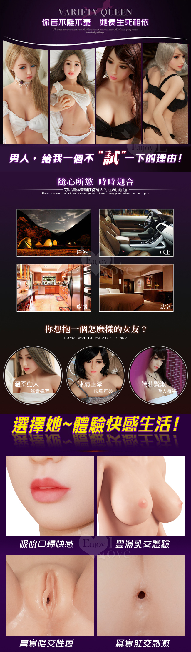 實體真人版娃娃:肉感十足,她能夠隨你自個支配,你能夠把她當成自個的情人來對待及裝扮,猶如情人般的特徵 - 美麗、性感、誘人,時時刻刻體貼著你。