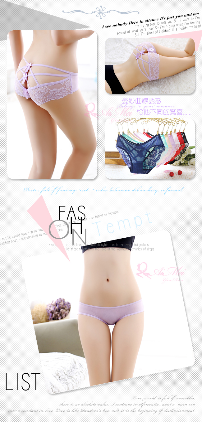 ※ 設計特色:蕾絲、交叉細帶鏤空、蝴蝶結。