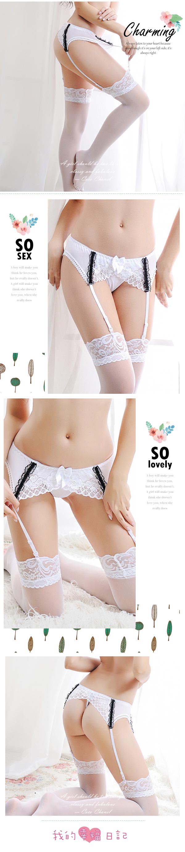 ►您現在的位置:首頁>美人爭豔‧蕾絲花邊撞色吊襪帶+大腿蕾絲絲襪(白)