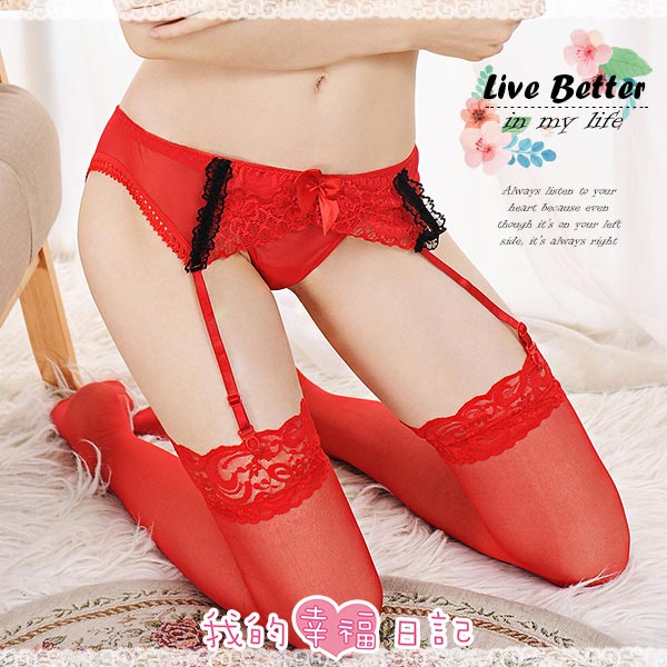 ◇◆美人爭豔‧蕾絲花邊撞色吊襪帶+大腿蕾絲絲襪(紅)◆◇