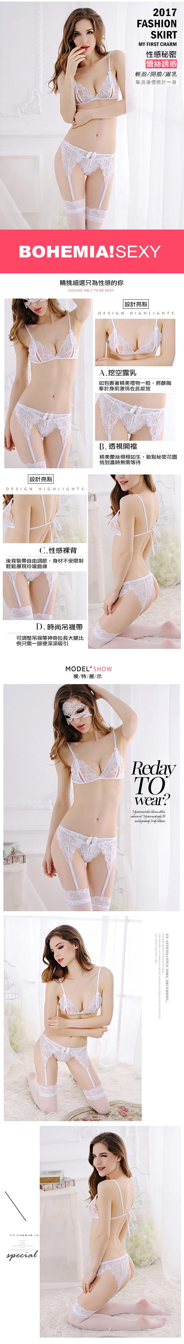 | 浪漫月夜‧狂騷情趣吊帶襪四件組(白)