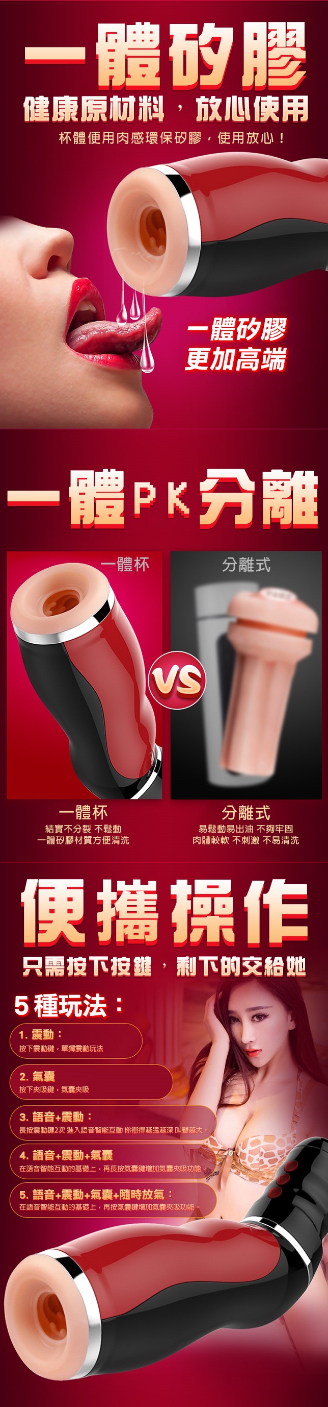 本款夾吸飛機杯,精致工藝設計,符合人體工學結構,生活防水。握感舒適,展現優美時尚的氣息。語音刺激享受,夾吸體驗,震動快感。簡單的操控,給您更多的性無限,超級靜音強大的震動夾吸給您帶來無限的快感,性愛更精彩。