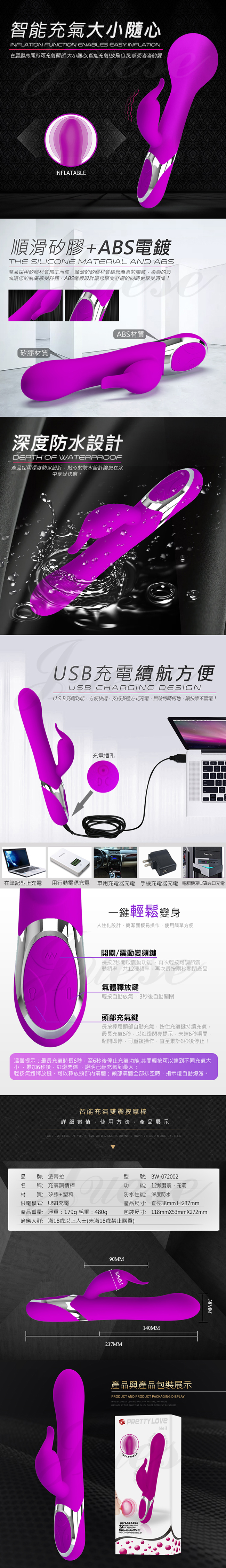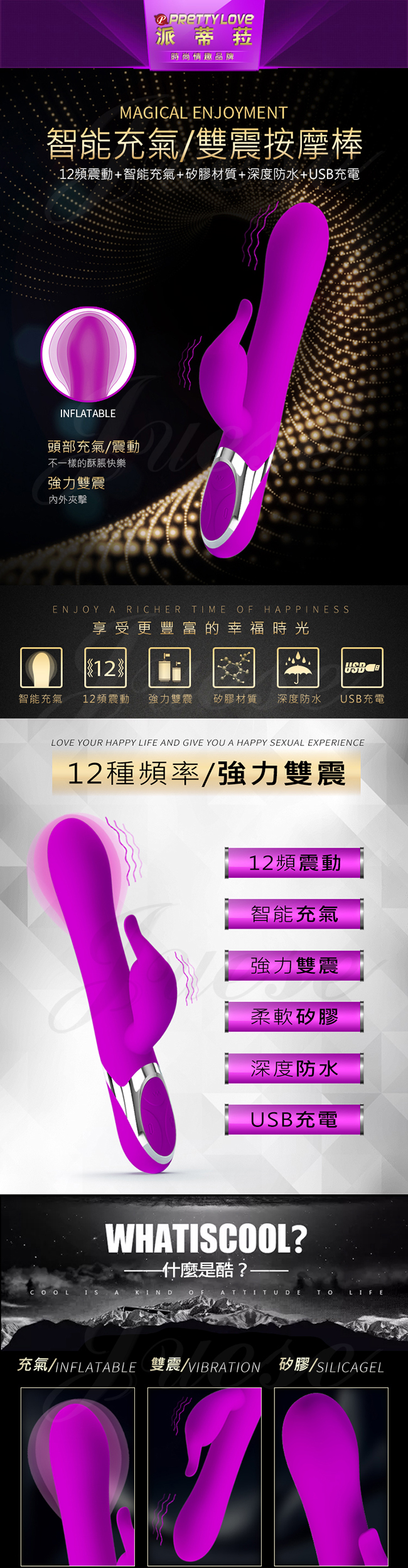 PRETTY LOVE-Neil 尼爾 強力12頻+智能充氣 USB充電矽膠按摩棒