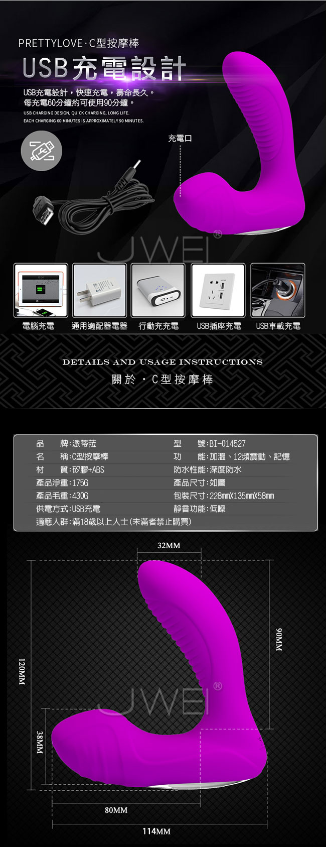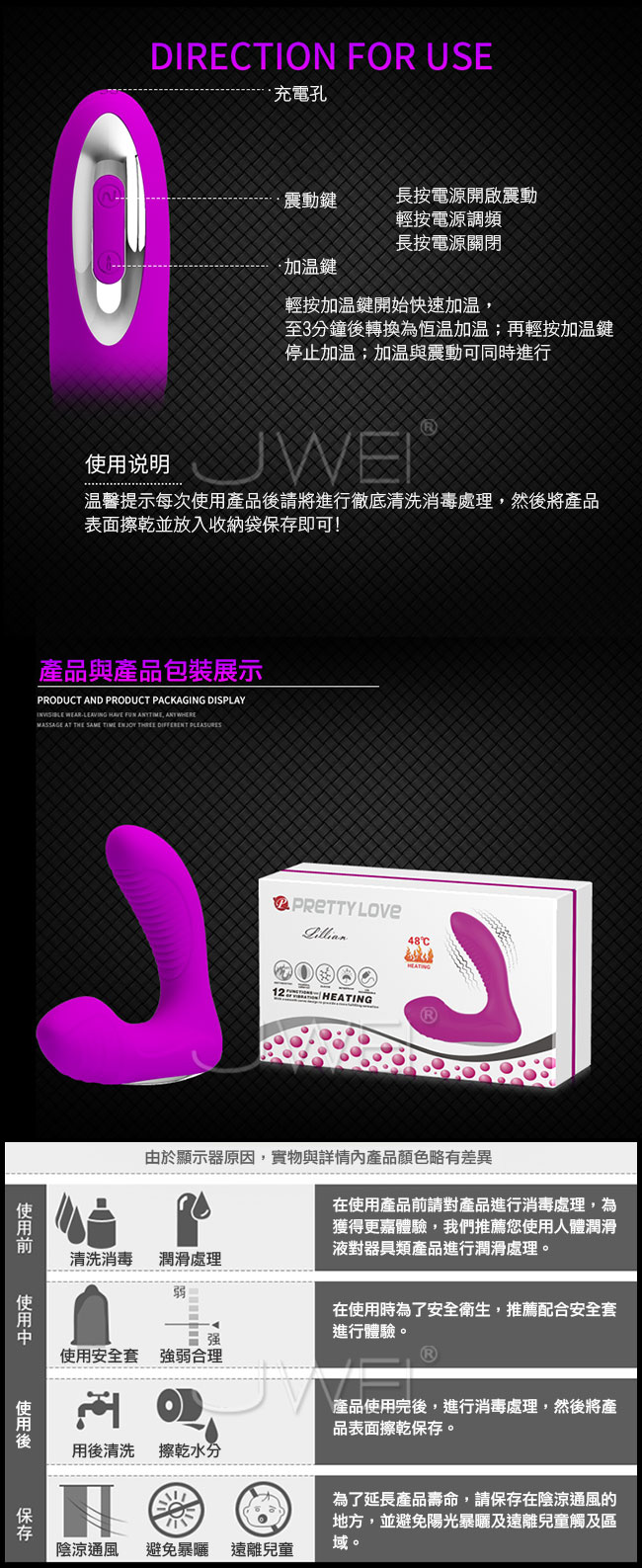 LillianC型後庭按摩器擁有智能加溫到48度,暖暖的進入很貼心拒絕冰冷無趣!此外12段變頻強勁雙馬達讓您後庭+前列腺狂野律動給您不一樣的舒適體驗!此產品採用記憶功能每次開啟都能記住上一次的震動頻率。男女通用可將棒身置入體內深度按摩,手柄部分按摩外部,按摩全身快樂點多種功能盡享快樂。採用順滑矽膠材質,貼心的工藝柔軟觸感溫潤讓您使用安心舒適。低燥音設計讓您在安靜環境內盡享愛的私密空間!防水設計清洗便捷讓您盡享歡樂時光喔~~USB充電設計,快速充電壽命長久,讓您愛愛不斷電!