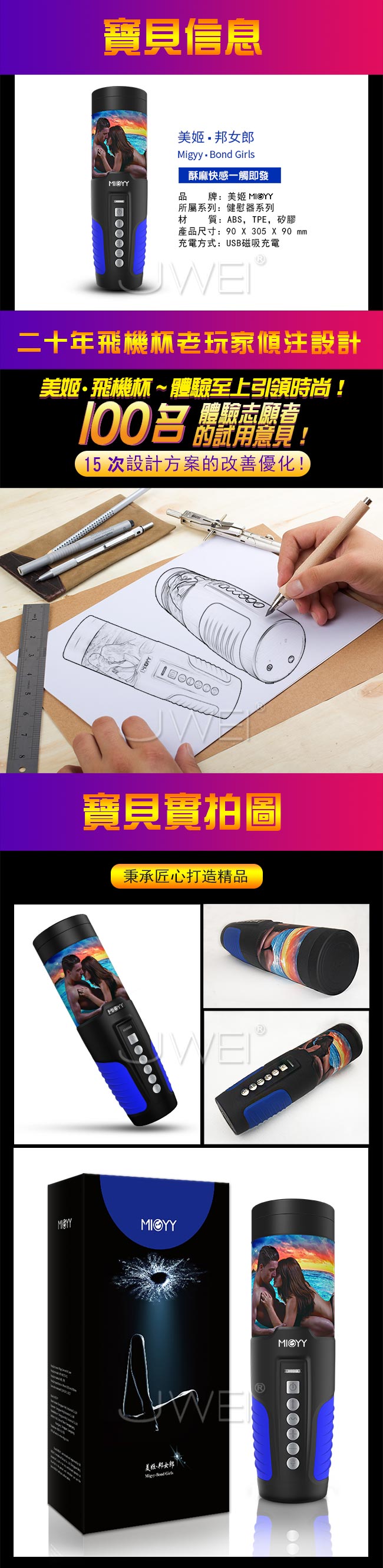 ■規格:尺寸詳如圖片標示 ■供電:USB磁吸充電 ■材質:ABS、TPE、矽膠 ■10頻5速 ■語音模式 ■4D逼真通道