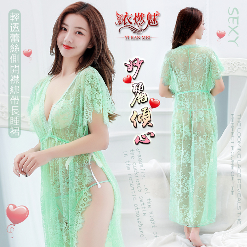 | 妙麗傾心!輕透蕾絲兩側開襟綁帶長睡裙﹝綠﹞