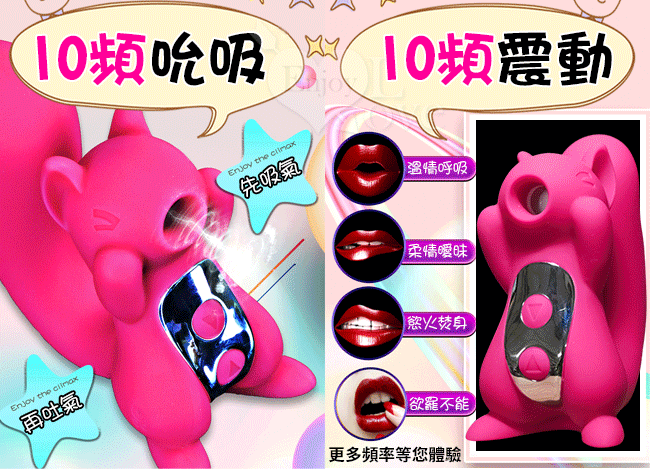 | 松鼠傾心版.10X10段變頻吸吮震動乳陰按摩器﹝防水靜音+USB充電﹞