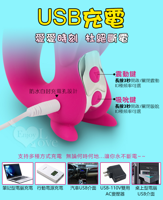 ►您現在的位置:首頁>松鼠傾心版.10X10段變頻吸吮震動乳陰按摩器﹝防水靜音+USB充電﹞