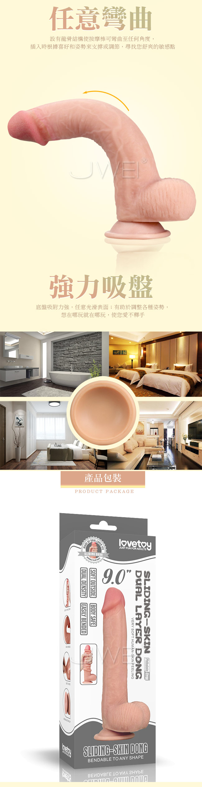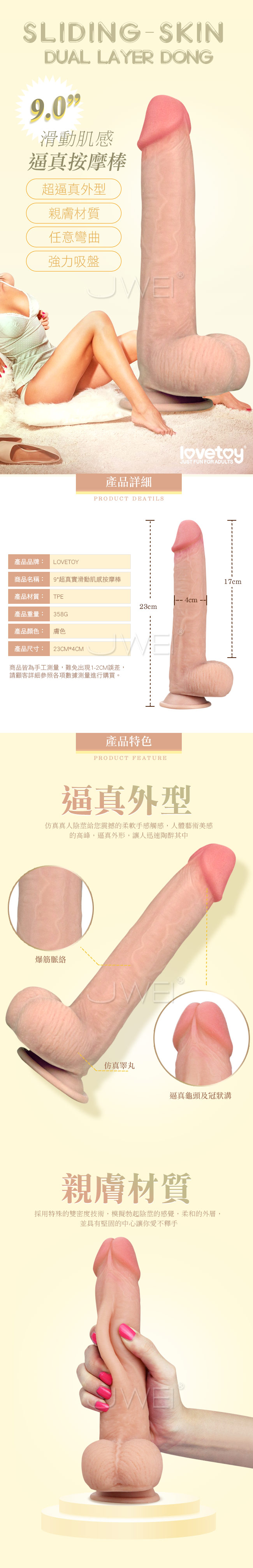 | Lovetoy.9吋超真實滑動肌感雙層材質吸盤仿真按摩棒