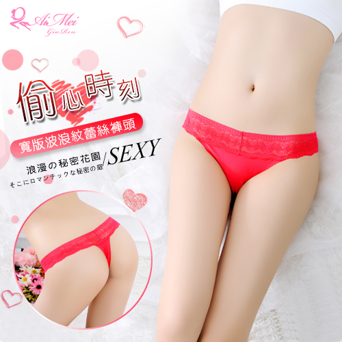 | 偷心時刻!寬版波浪紋蕾絲褲頭T字褲﹝紅﹞