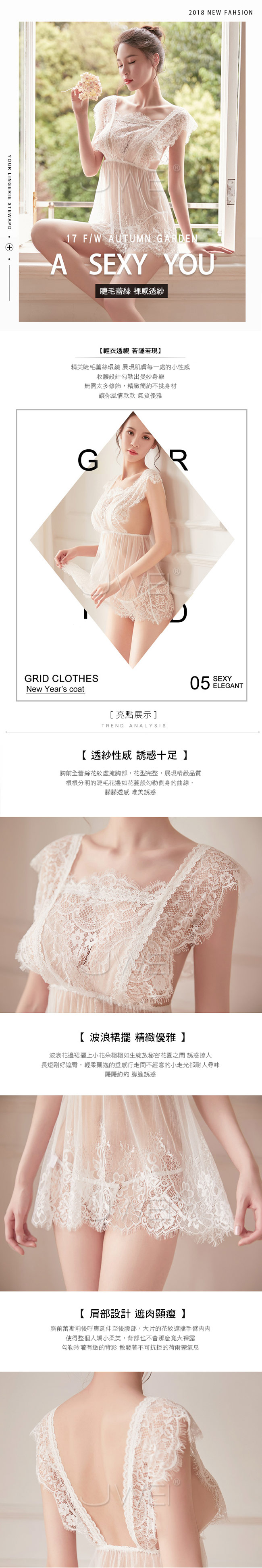 | 朦朧之月.睫毛蕾絲裸感透紗性感睡衣(白色)