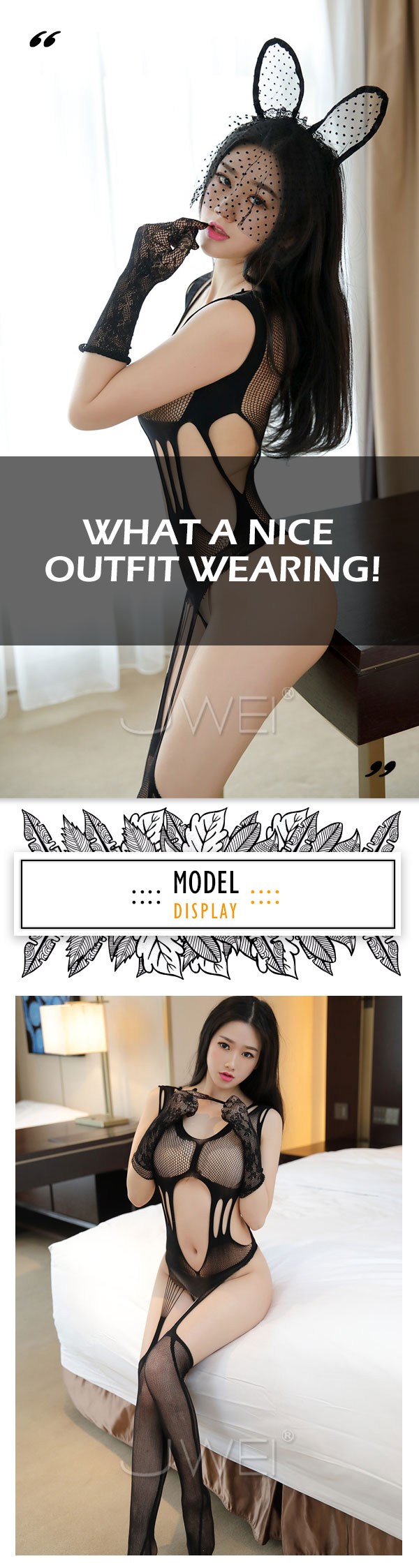 胸前性感網狀蕾絲透視,使胸前玉兔若隱若現,