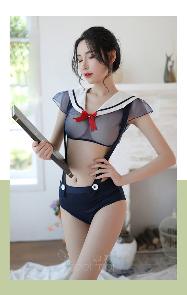 ►您現在的位置:首頁>學生角色扮演服!網紗水手領後Y型吊帶開檔褲兩件組﹝藍上衣+藍褲﹞