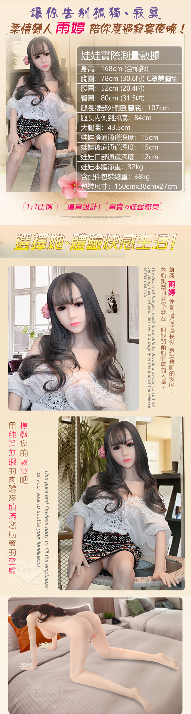 | 《 雨婷 Yu Ting - 柔情戀人 》全實體矽膠真人智能版愛娃 5大特點+5種互動功能﹝168cm / 32kg﹞