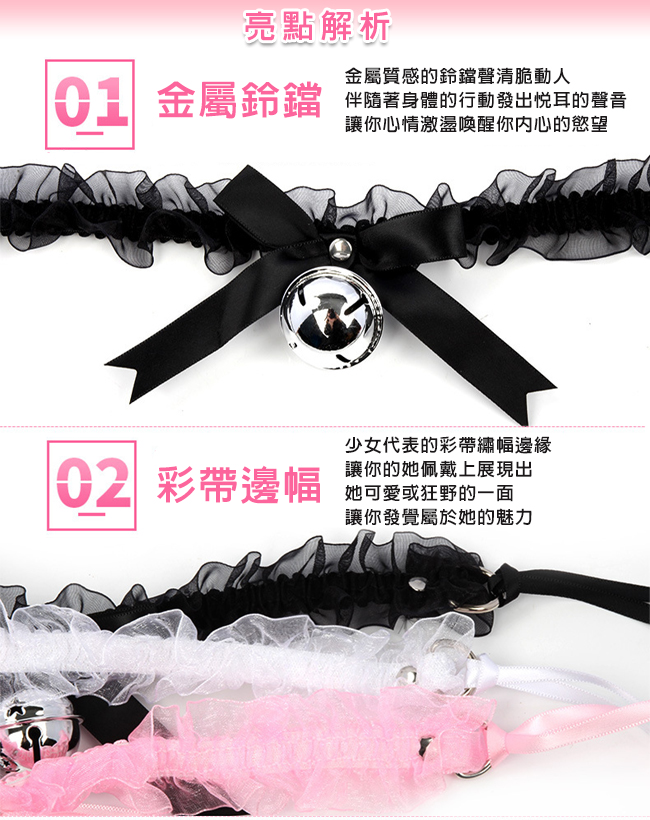 ►您現在的位置:首頁>貓女郎 ‧ 日萌系可愛雪紡花邊大鈴鐺蝴蝶結繫帶頸帶-黑色/粉色/白色