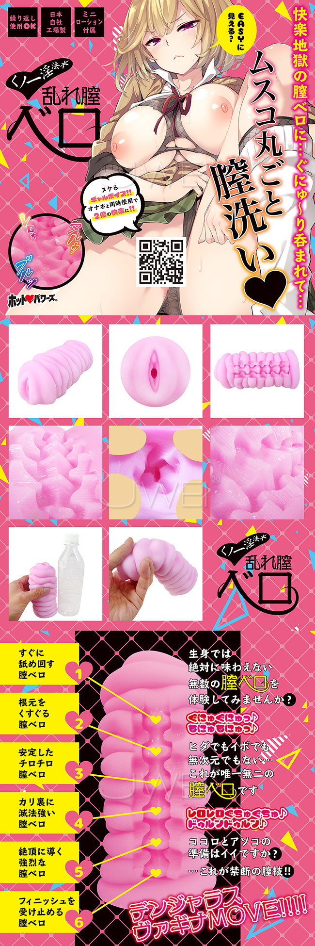 リアルの女性では味わえない無数の膣ベロ構造のオナホールを体験してみませんか。 ヒダヒダともイボイボとも、無次元時構造ともちがう唯一無二の膣ベロ内部構造は、ぐにゅぐにゅ、もにゅもにゅの新しい感触。 挿入すぐに舐め回す膣ベロは、根元をくすぐり、チロチロ舐めたり、カリ裏刺激、絶頂に導く強烈なベロ内部。 膣内部でサオがペロペロされまくるいわばサオベロン。
