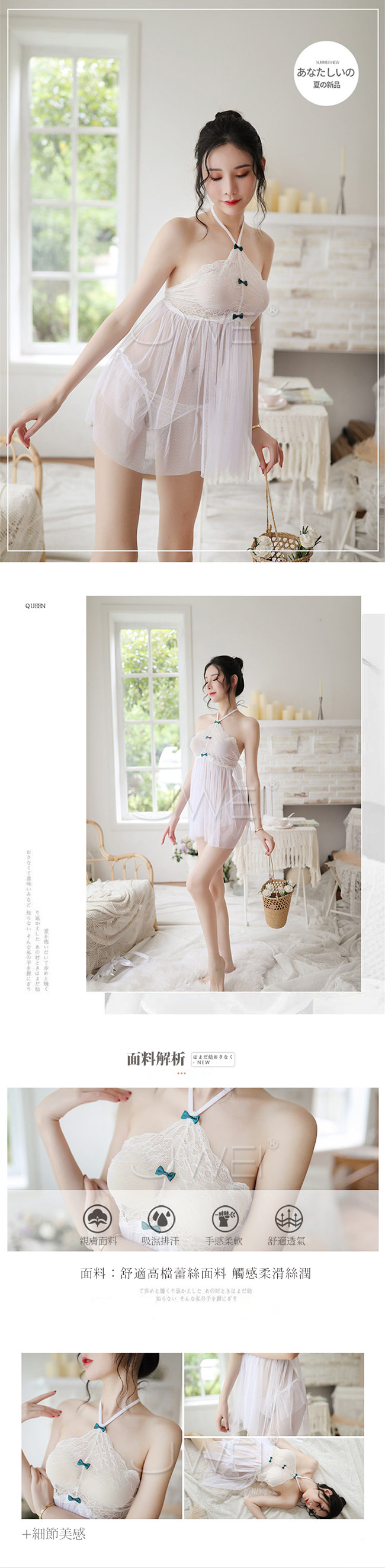 若隱若現的透視感搭配睫毛蕾絲增添純淨感~