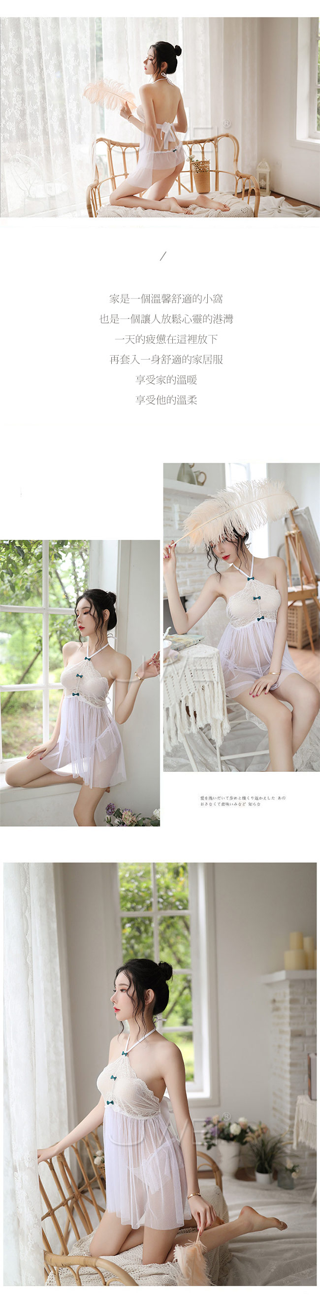 ◇◆愛戀花漾.唯美掛脖透視吊帶蕾絲睡衣◆◇