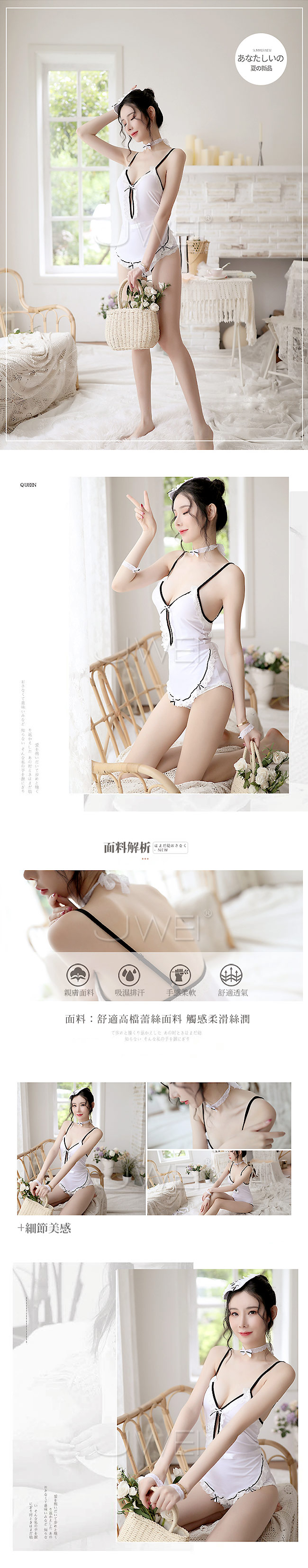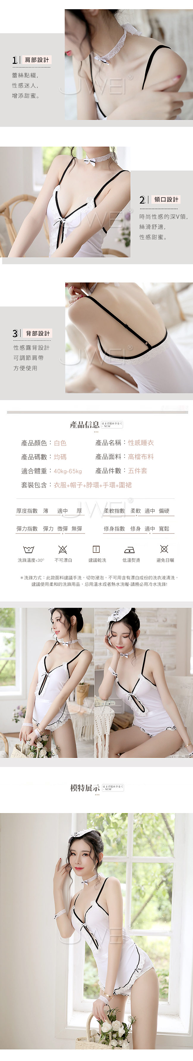 ◇◆貼心俏佳人.V領蕾絲女僕套裝五件組◆◇