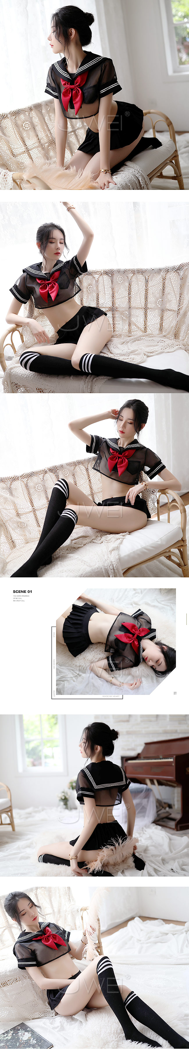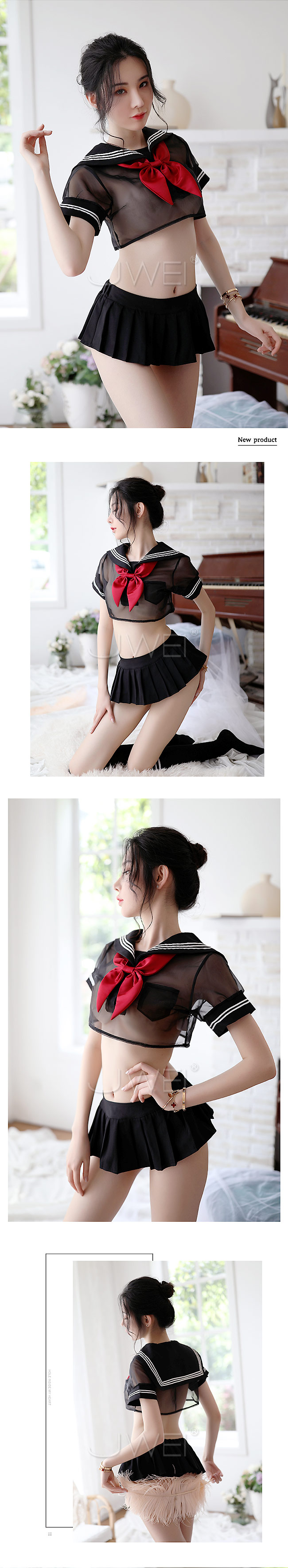 分體式透視學生水手服上衣,露出女人性感曲線,