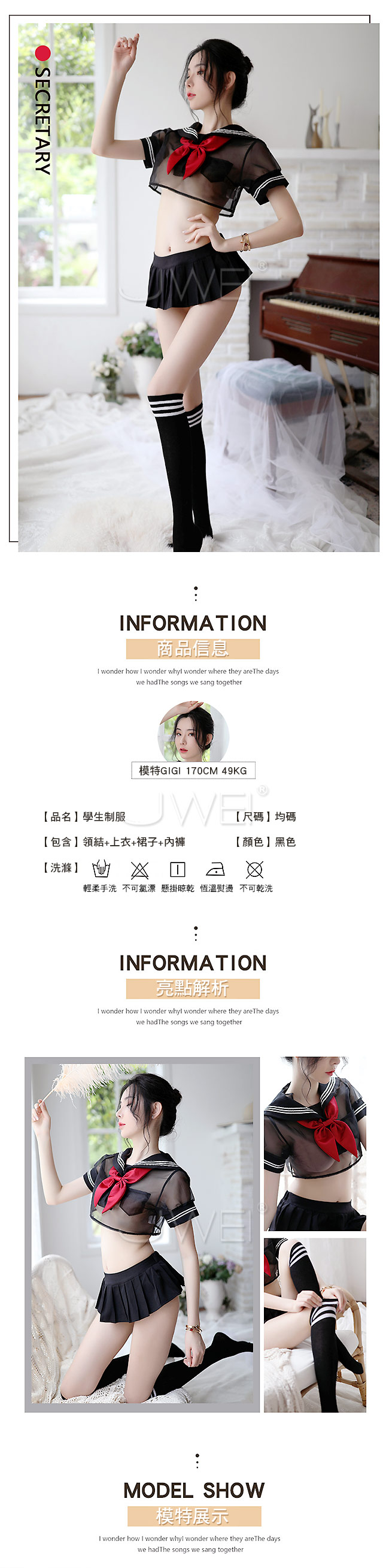 ►您現在的位置:首頁>初戀手札.分體式百褶短裙學生制服四件組(黑色)