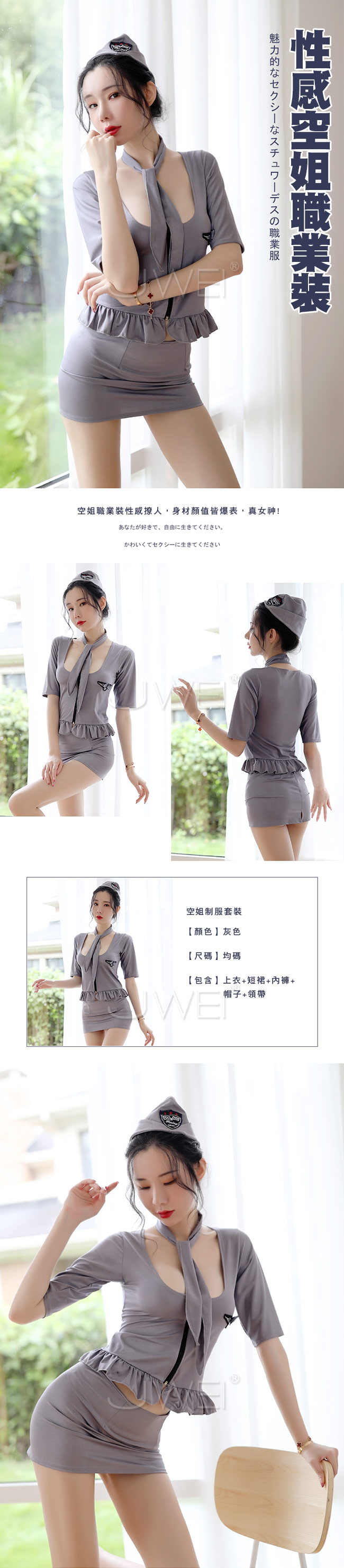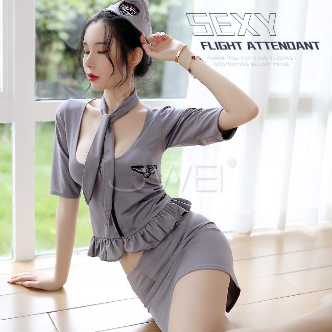 分體式空姐套裝搭配花邊點綴,露出女人性感曲線,