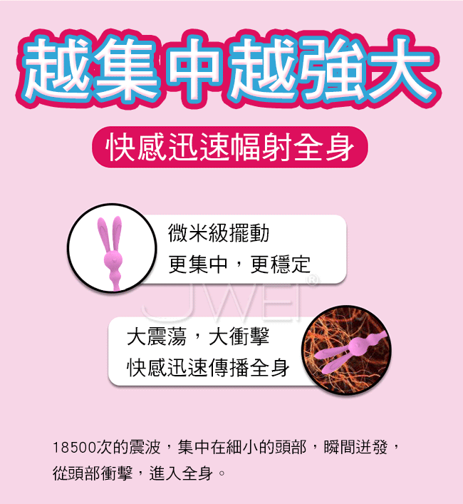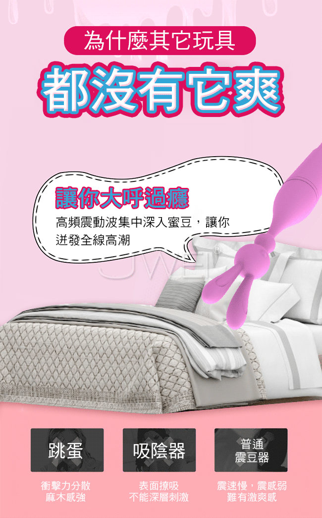 你沒有玩過的新玩具可愛萌兔造型高頻震動蜜豆棒,激顫單點集中刺激全身敏感點探索,高頻震動波集中深入蜜豆,讓你迸發全線高潮。低音防水功能如戀人的私慾體貼入微,重量比手機還輕,大小比牙刷還小,放在包包裡毫無壓力喔~