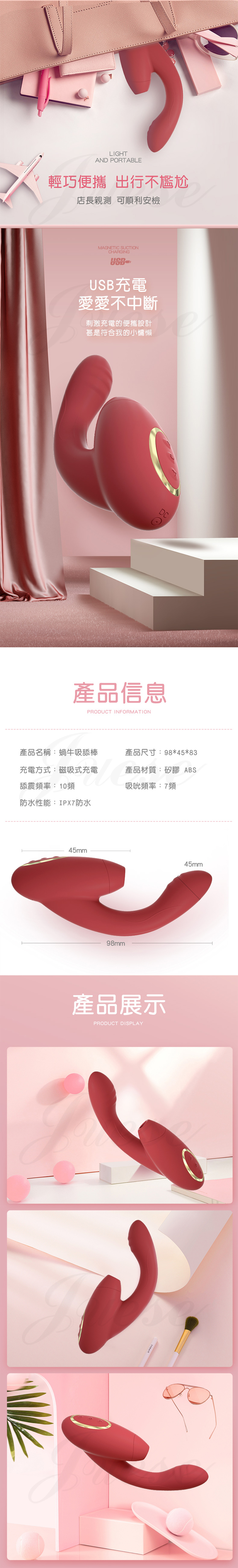 ►您現在的位置:首頁> 蘇西 7頻吮吸+10頻震動雙重高潮按摩棒-紅/粉