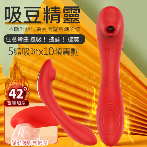 | 吸豆精靈 5頻吮吸舌舔+10頻震動智能加溫矽膠震動按摩棒-女王紅