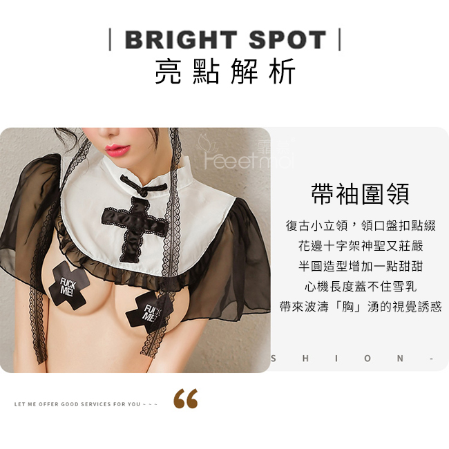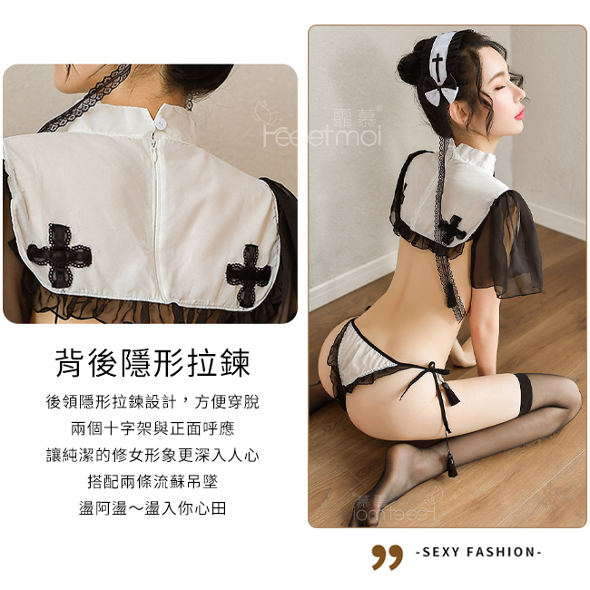 ►您現在的位置:首頁>禁慾系修女角色扮演服!帶袖圍領木耳花邊套裝 - 含絲襪+胸貼