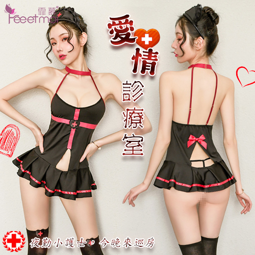 ►您現在的位置:首頁>護士角色扮演服!掛脖低胸十字愛心短裙四件式套裝﹝黑﹞