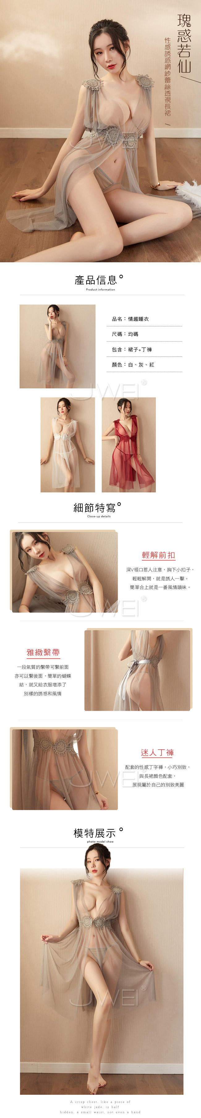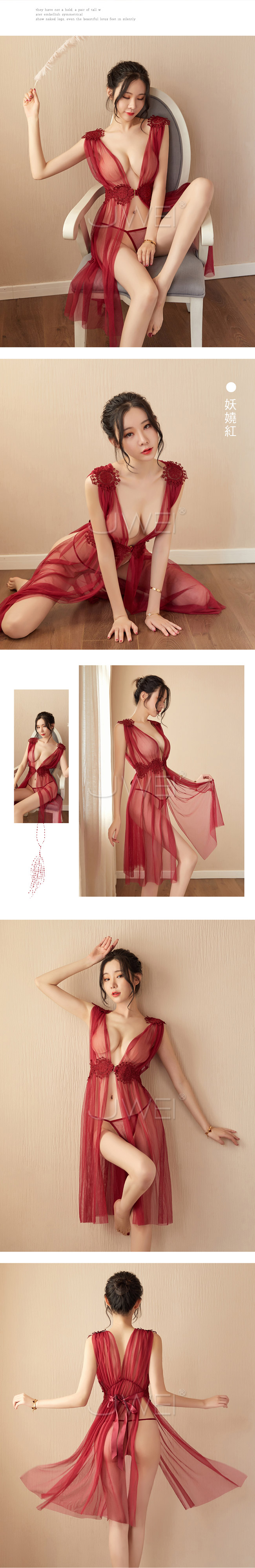 ►您現在的位置:首頁>飄逸仙子.透視蕾絲網紗睡長裙(紅色)