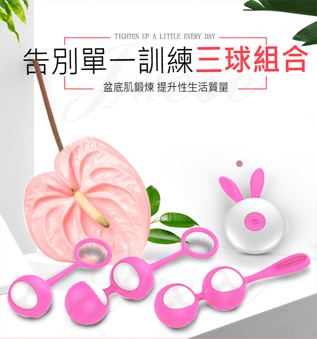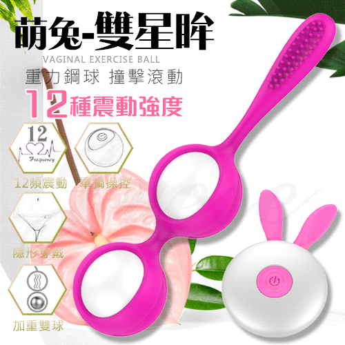 萌兔雙星眸 12段變頻矽膠充電遙控震動縮陰球-雙球-玫紅