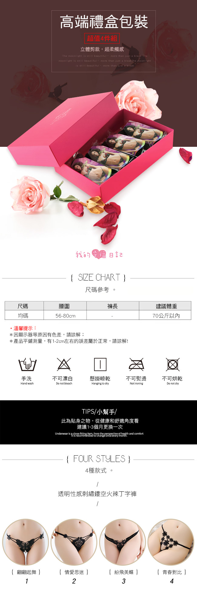 ■內容物:禮盒組x1(內含4件丁字褲)