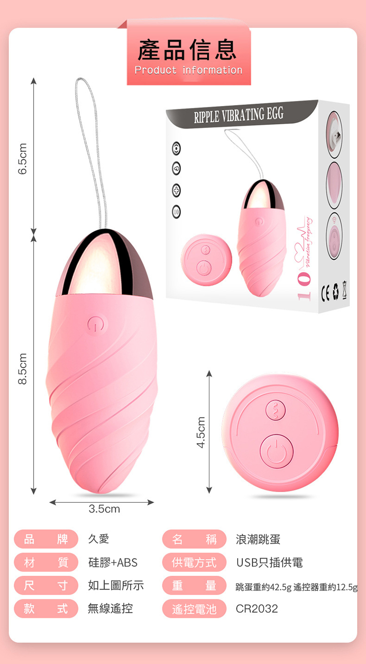 浪潮.摩登時尚遠端10頻遙控跳蛋(粉色)