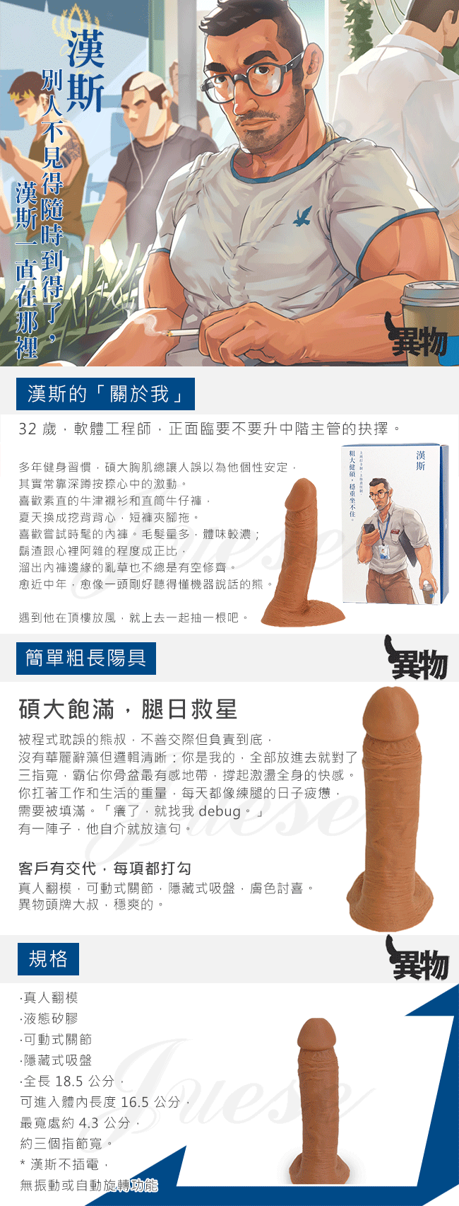 ►您現在的位置:首頁>漢斯 可動式關節真人翻模逼真老二棒-隱藏式吸盤