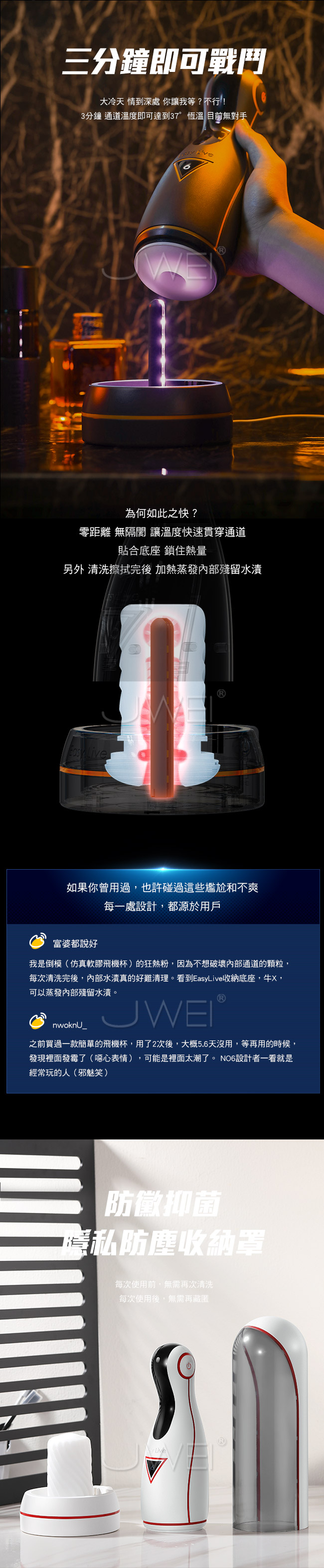 Easy live.NO.6三代 4x6段吸吮蠕動一鍵爆發智能飛機杯-黑色