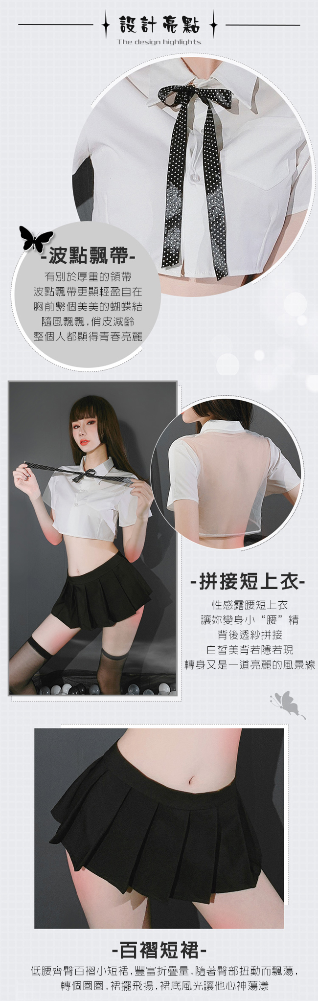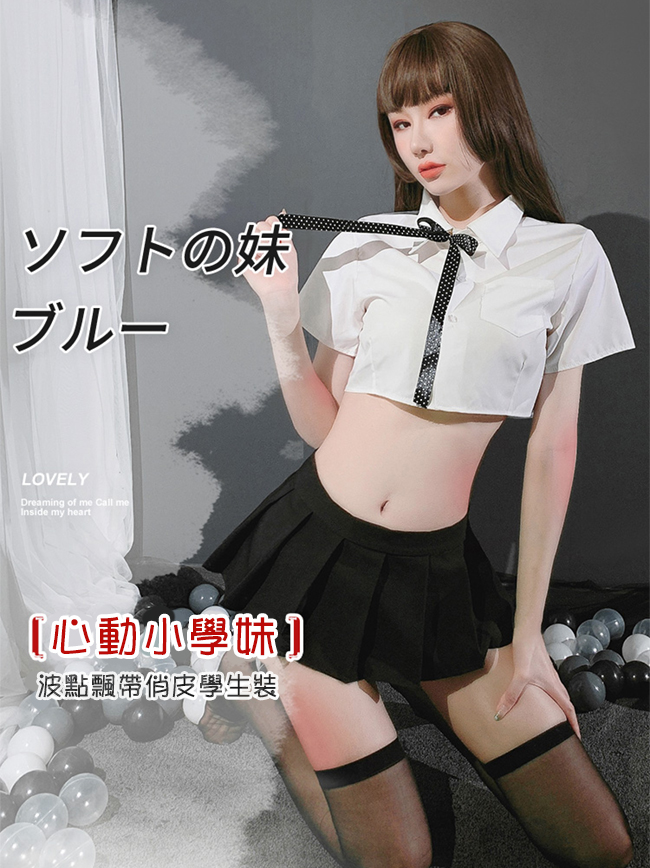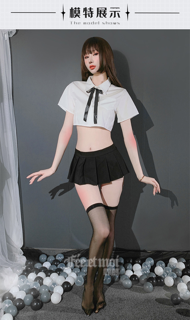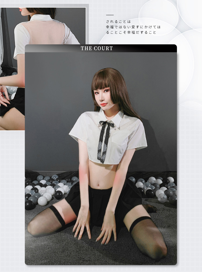 ►您現在的位置:首頁>《FEE ET MOI》學生角色扮演服!後背裸肌透紗拼接襯衫百摺短裙四件式套裝