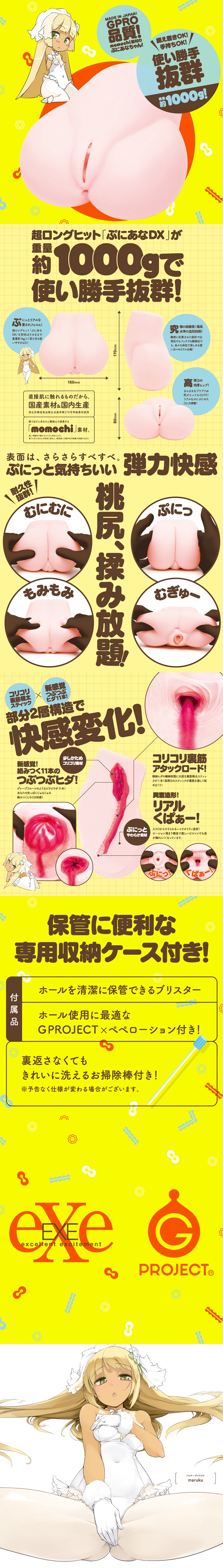 超人氣自慰套「普尼妮安娜DX」跟G PROJECT的夢幻合作款!Momochi素材製作的優秀自慰套!手握也行,放置也行,方便使用的重量約1,000g!高水平的造型與技術追求最完美的曲線!仿真的彈力愛的形狀!表面柔滑好觸摸。舒適度十足的高彈力。卓越的耐久性蜜桃可任您揉捏!【內部含有摩擦極粗棒】及【11條新感覺顆粒橫條】雙層構造提供不同的快感體驗。使用日本國產素材&日本國內生產,直接接觸肌膚也很安心。插畫家:maruku