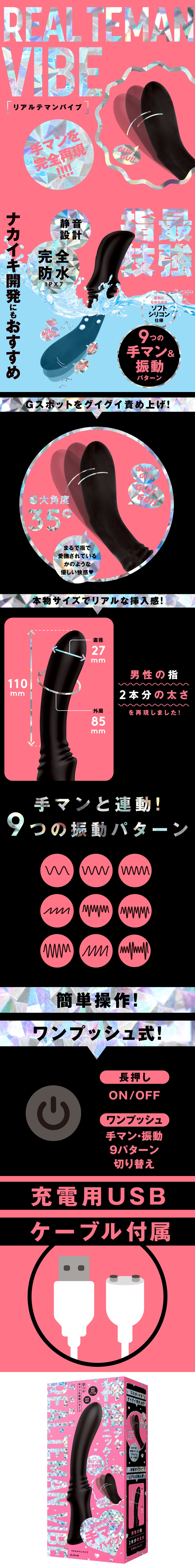 神指技術!完全再現指交!大大針對G點,最大角度35度!讓您體驗逼真插入感覺的按摩棒,再現了男性兩根手指的粗細。直徑為27毫米的細長設計,初學者也推薦使用。觸感光滑柔軟的矽膠,可以順利插入。最強的指法,最好的指交體驗與也推薦用於開發陰道高潮_9種指交&振動模式&完全防水IPX7等級&靜音設計&附屬充電的USB線。