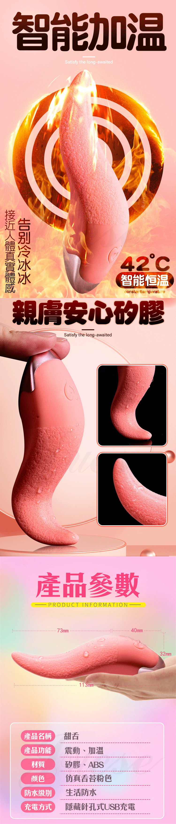 | 甜舌 9段變頻舌尖震顫智能加溫矽膠按摩器