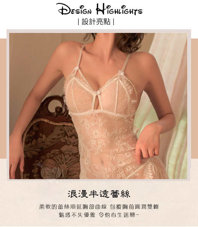 ►您現在的位置:首頁>《 Enjoy Love 》情趣睡衣!可調肩帶繡花細線薄透蕾絲連身裙兩件組﹝白﹞