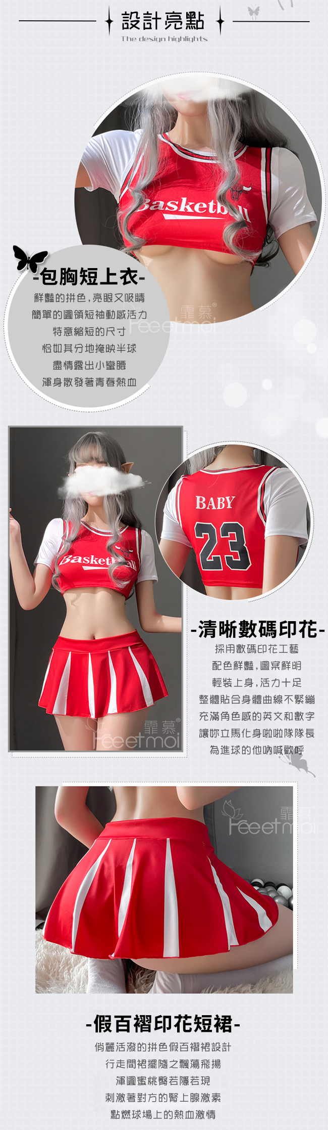 啦啦隊角色扮演服!包胸短上衣仿百褶短裙三件式套裝﹝紅白﹞
